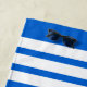 Blue Piranha Fish on Blue and White Striped Beach Towel