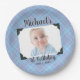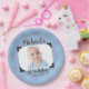 Blue Plaid 1st Birthday Photo With Name & Date Paper Plates