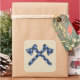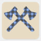 A sticker with two axes crossed, this design features a blue and black plaid pattern with a beige background. Personalize as you wish.