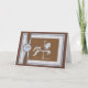 This blue plaid carousel horse thank you card is designed with a layered ribbon on front and a button with wording in the middle saying "Thank You". The inside also has a blue carousel horse and the wording can be changed as you prefer.