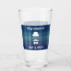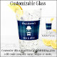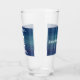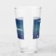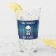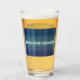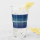 This glass has a blue plaid background both on the front and the back of the drinking glass design