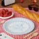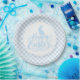 Party paper plate is shown in a cute powder blue and white plaid Easter print.