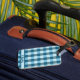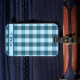 Blue plaid luggage tag for guys or gals. Personalize with your name.