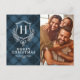 Blue Plaid Monogram Photo Christmas Holiday Postcard