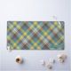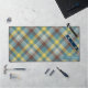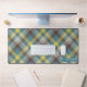 Blue Plaid Pattern Custom Name Monogram Text Desk Mat