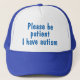 Blue please be patient I have autism hat. Trucker Hat