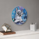 Original watercolor painting by Sandra Gale, featuring a blue point Siamese cat, surrounded by blue flowers on a pale purple background. Flowers are blue hydrangea, and blue poppies. Great design for cat lovers and those who especially like the Siamese breed. Perfect for bedroom wall art or framed with matching image. Matching watercolor painting of a chocolate point Siamese also available in my EverIrisPrints store.