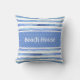 Blue polka dot and blue and white stripe nautical watercolor pillow with beach house.