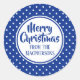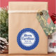 Sticker holiday gift tags with a blue polka dot background. The "Merry Christmas" greeting and who it is from can be changed.