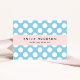 Cute, fun and adorable business cards with polka dot pattern in blue and white color. Modern and trendy design, perfect for polka dots lovers.