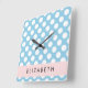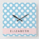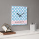 Blue Polka Dots, Polka Dot Pattern, Your Name Square Wall Clock