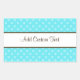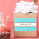 A pretty almost teal blue with light polka dots. The center has a white rectangle with a dark brown outline that can serve as a highlight for your custom text, or if you prefer, you can easily remove it.