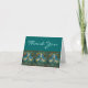 A customizable thank you card with blue pomegranates surrounded by scrolling leaves in shades of brown on an aqua green background grace this elegant art reproduced from an antique majolica art tiles. Click Customize It to add your name or message, change background colors and more, even save your design for later.
