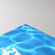 Customizable "Keep Calm and Swim On" with white text against tinted photo of blue swimming pool water.