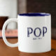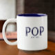 Pop coffee mug design with established year featuring a blue stamped font set on a white background. Click customize to edit the background color!. Visit our shop to view this mug in a large assortment of grandfather names.