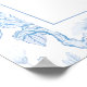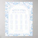 Elegant boho romantic blue chinoiserie porcelain inspired floral boho arch wedding seating chart poster with 12 tables total.