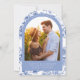 The matter paper is our sample of choice -- it's a reasonably priced, good quality, nice feeling paper stock. We were a little concerned the muted rustic blues might not reproduce all that well (usually by light colored samples), but they're just gorgeous! The white lettering is perfect in combination with the blue background, and the typography is all easy to read.