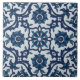 Vintage blue watercolor portuguese azulejos ceramic tiles mandala floral pattern on a white background.