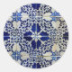 Blue, Portuguese Tiles Classic Round Sticker