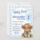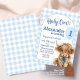 Blue Preppy Gingham Cow Boy First Birthday Invitation
