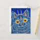 A fine art postcard featuring an abstract blue cat illustration by the English artist Louis Wain (1860-1939). Renowned for his illustrations, he is most celebrated for his depictions of animals and pastoral scenes, particularly his distinctive large-eyed cats full of character. This drawing is from his psychedelic period.
