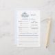 Blue Pumpkin Baby Prediction and Advice Game Card