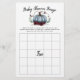 Have some fun at your baby shower with this bingo game card. Illustration of a blue pumpkin with faux silver glitter. The bingo game asks the guests to guess what gifts the mommy-to-be will be receiving. Original illustration and design by Namibear Art Studio.©Namibear