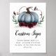 Little pumpkin theme baby shower custom sign featuring illustration of a blue pumpkin with burgundy red flowers and greenery. Create signs such as cards & signs, mimosa bar, favors, guestbook, etc. Perfect for a boy's shower in the fall.