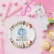 Fall themed blue pumpkin boy baby shower paper plates.