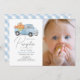 Blue Pumpkin Truck Gingham Boy Photo 1st Birthday Invitation