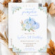 This cute and whimsical watercolor birthday party invitation features pastel blue pumpkins and beautiful floral arrangements. The text combines handwritten script and sans serif fonts for a stylish and modern look. This is perfect for an autumn fall birthday party.