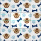 This cute brown puppy dog with blue paw prints and navy blue bones is perfect for pets and kids alike!