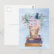 Blue Purple Books and Flowers Art Postcard