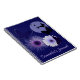 Sweet and fun for any nature lover! Soft blue and purple Gerbera daisies bloom, surrounded by blue, purple and black butterflies. A lavender moon hangs in twilight, on a deep royal blue background. Makes a stylish journal, diary, log. Or great back to school idea to be used for homework or classwork. Lovely for a young girl or teen. Customize text with title, name or monogram.