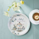 Blue purple watercolor floral tea party bridal shower monogrammed personalized paper plates template bridal shower table decor