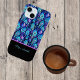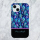The vivid blue and purple peacock feathers form a fascinating, almost tribal pattern in this deign. Each feather has additional symbols and patterns embedded within it for an inspirational look. Your or your recipient's name appears in script against a colorblock of black at the top of this distinctive phone case, available on multiple styles of iphone and Samsung cases.