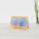 Painting of a blue and a purple sea shell in the sand, with Save the date, is printed on custom note cards. There is a placeholder for your personalized text inside.