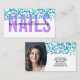 Blue Purple Sequins Large Text NAILS Custom Business Card