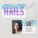 Blue Purple Sequins Large Text NAILS QR Code Busin Business Card