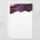 Stationery paper with an abstract design with blue and purple layers with faux gold foil ribbons in between.
