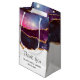 A thank you gift bag with an abstract design with blue and purple layers with faux gold foil ribbons in between.