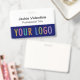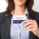 Personalize our professional PVC name badge with your company logo, employee name, job title, or other custom text. Available with a lanyard, metal clip, or retractable reel. Designed in blue and other colors with a modern minimalist design by MISOOK. All colors are customizable. The dimensions are 3.38 inch x 2.13 inch. No minimum order quantity and no setup fee.