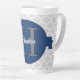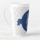 Enjoy your latte or morning coffee with a Blue Quatrefoil Personalized Latte Mug. Mug design features a simple quatrefoil background and fancy emblem to personalize with your name and monogram. Additional gift items available with this design as well as a variety of colors.