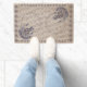 Captivating Blue Rabbit Rustic Lavender Coir Mat features an adorable rabbit enclosed within a circular frame with soothing taupe and lavender.