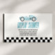 This is a Blue Race Car Checkered Race Flag Baby Shower Display Shower Enclosure Card!