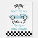 This is a Blue Race Car Ready Set Go Baby Shower Welcome Sign!