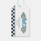Blue race car birthday gift tags