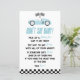 This is a Blue Race Car Don't Say Baby! Baby Shower Game.