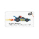 A fun design with a blue race car and checkered flag. Customize for birthdays or any occasion. Coordinating items available.