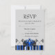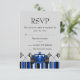 This Modern customizable RSVP features a blue Race Car on a gray background. Customize it by adding your details in the font of your choice!